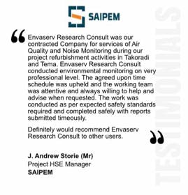 “We are a multi-disciplinary environmental planning consultant and laboratory testing firm providing innovative solutions and services to our clients in the oil and gas, mining, agriculture, transportation, construction and manufacturing industries with high quality bespoke results on schedule and meeting budgetary requirements creating a shared value beyond compliance”